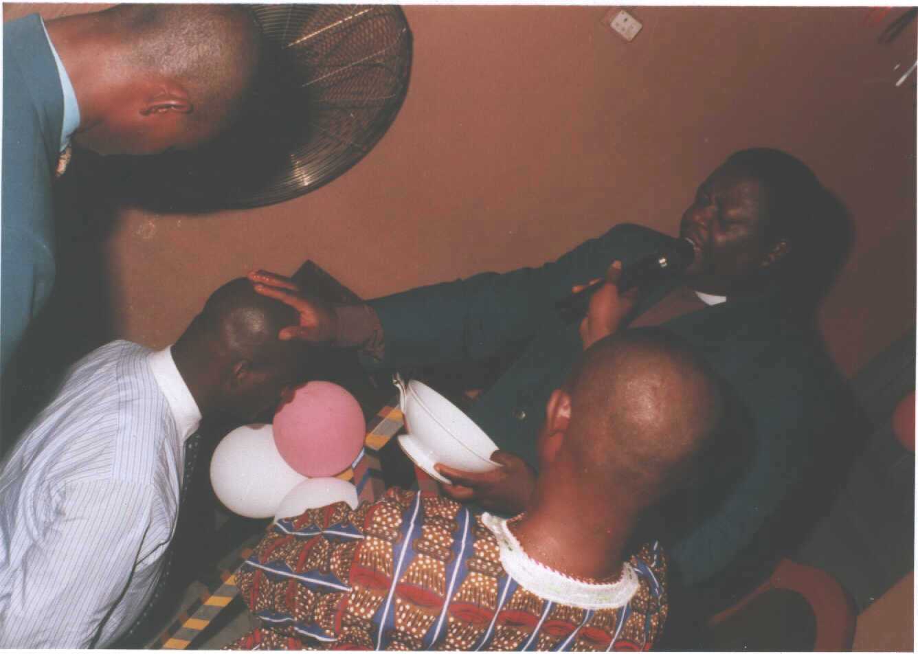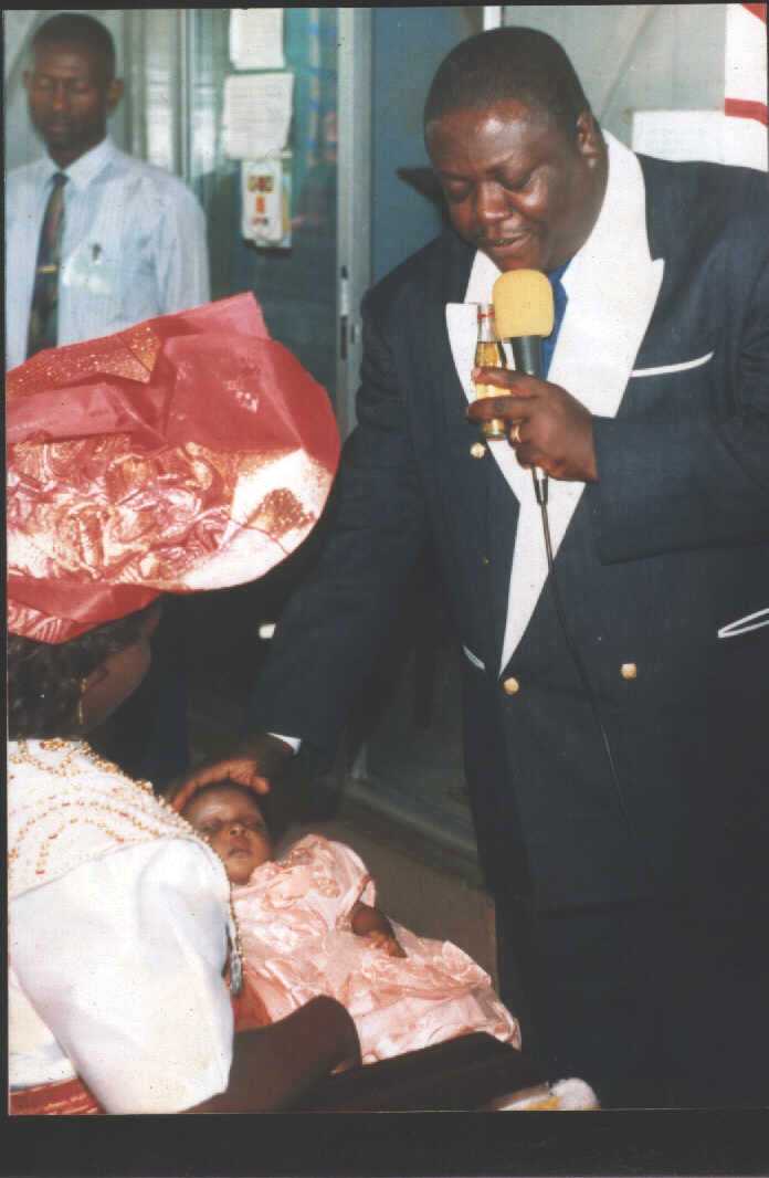 Rev. Dr. Adesina blessing a baby after the parents had waited for 17 years